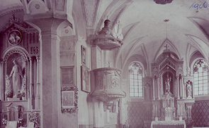 Alter Marienaltar: Errichtet 1907 aus Spenden der Marianischen Jungfrauenkongregation, unter Pfarrer Asamer 1961 abgetragen.