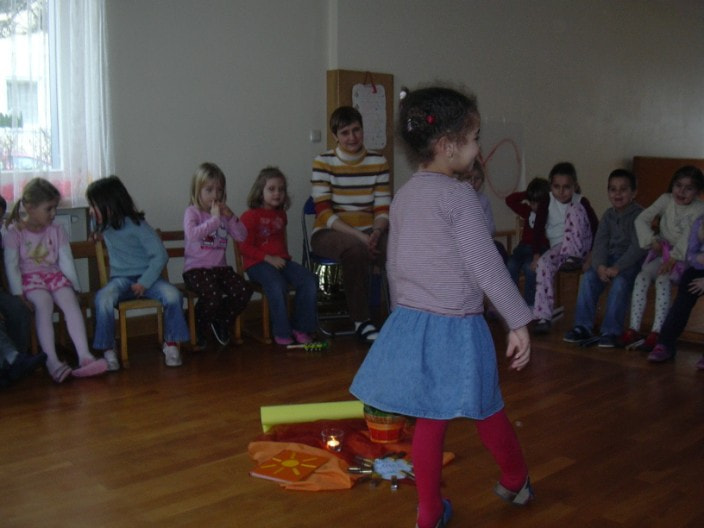 Wir suchten Strassen in unserer Umgebung, die nach Komponisten benannt sind und Kinder unseres Kindergartens wohnen und machten einen Besuch im Kindergarten der Zukunft mit Kinovorführung. Am 8. Februar verabschiedeten wir uns von unserer Kindergartenhelferin Edith Decker, die sich beruflich verändert.
